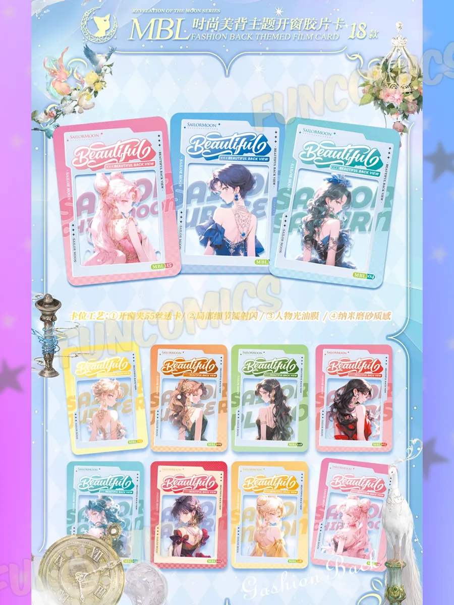 Коллекционные карточки аниме Сейлор Мун. Данный бокс включает в себя 12+1 упаковок карточек. В каждом бустере по 2 карты, всего 24 карты. В подарок идет случайный аниме значок