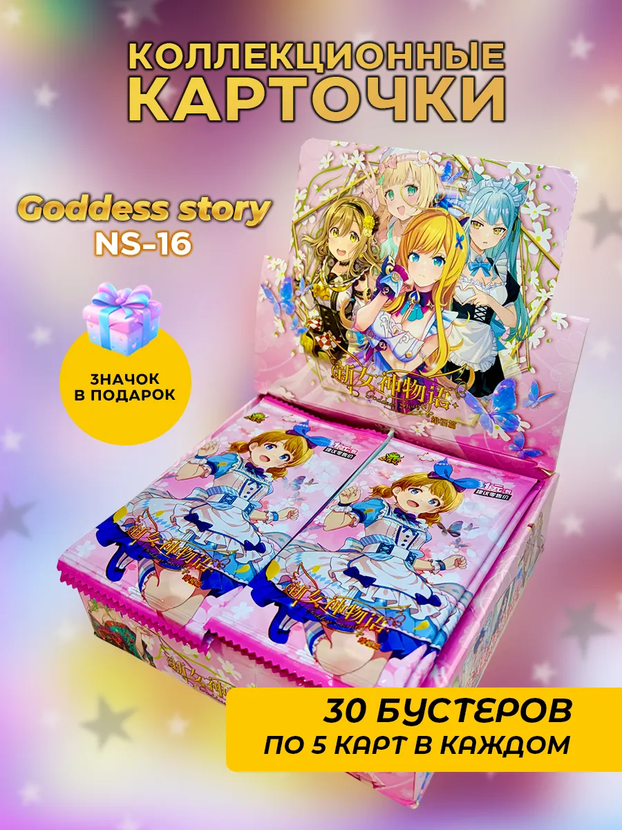 Коллекционные аниме тян карточки Истории Богини NS-16. Данный бокс включает в себя 30 упаковок карточек, в каждом бустере по 5 карт, всего 150 карт. В подарок идет случайная аниме открытка